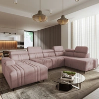 Rohová pohovka s funkcí spaní Castel IV růžová pravá stylová rohová pohovka s kontejnery na lůžkoviny a nastavitelnými opěrkami hlavy