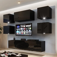 Sufli černá / černá lesklá nástěnná skříňka Mimořádně stylová nástěnná skříňka do obývacího pokoje vizuálně atraktivní a funkční