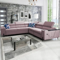Rohová pohovka s funkcí spaní Rava VI levandulově růžová levá Praktická a moderní rohová pohovka vybavená multifunkční lampou
