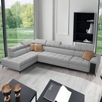 Rohová pohovka s funkcí spaní Castel VII šedý jasan levá stylová rohová pohovka s úložným prostorem na lůžkoviny a nastavitelnými opěrkami hlavy