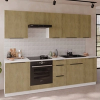 Sada kuchyňského nábytku Cremona 260 cm elegantní kuchyňské skříňky v jemných a přírodních barvách úchyty s kovovými hranami