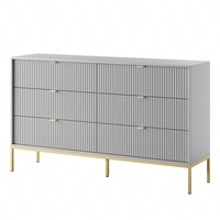 Šedá komoda Lovro 154 cm moderní design potěší milovníky výrazných interiérů rýhovaná čela zlaté doplňky