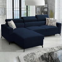 Rohová sedací souprava s funkcí spaní Fogu modrá levá strana stylová rohová sedací souprava s jednoduchým designem potažená nádobou na lůžkoviny z manšestrové tkaniny