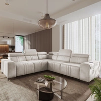 Rohová sedací souprava s funkcí spaní Castel III béžová pravá rohová sedací souprava se dvěma lůžkovinami nastavitelné opěrky hlavy