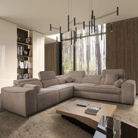 Rohová sedací souprava s funkcí spaní Tesalia V béžová levá komfortní rohová sedací souprava se zásuvkou a funkcí posuvného opěradla