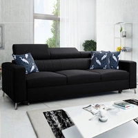 Pohovka Savona s funkcí spaní černá pohodlná pohovka do obývacího pokoje poskytuje pohodlí při odpočinku nastavitelné opěrky hlavy