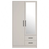 Zrcadlová šatní skříň Maxione 150 cm béžová funkční šatní skříň do ložnice, pokoje pro mládež nebo předsíně obohacená o zásuvky