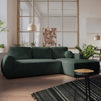 Rohová sedací souprava s funkcí spaní Colio zelená pravá strana stylová rohová sedací souprava se zajímavým tvarem velurové tkaniny dekorativní polštářová koule