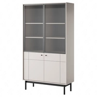 Vitrína Modesta 104 cm béžová elegantní vitrína do obývacího pokoje s minimalistickým designem rýhované tvrzené sklo
