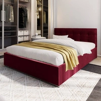 Čalouněná postel Alford 140x200 bordó s úložným boxem v moderním skandinávském stylu s prošívaným čelem a nohama s povrchovou úpravou krystaly