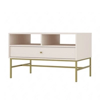 Konferenční stolek Kioto III béžový se zásuvkou elegantní konstrukce vyztužená kovovým rámem ve zlaté barvě subtilní rukojeť