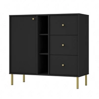 Zásuvková komoda Kioto III 84 cm černá grafitová ideální komoda do obývacího pokoje nebo ložnice v moderním stylu zlatý kovový rám