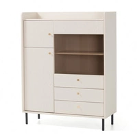 Komoda Ferdi 104 cm béžová písková minimalistický design vysoká komoda ideální do jídelny částečně prosklené čelo