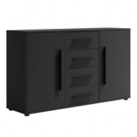Komoda Maxione 150 cm černá elegantní a univerzální styl komody do ložnice nebo obývacího pokoje vkusné černé úchyty