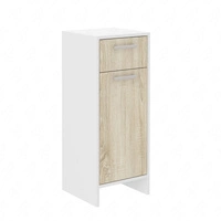 Koupelnová skříňka Mela 34 cm bílá / dub sonoma elegantní koupelnová skříňka se zásuvkou odolnou proti páře a rozlití tekutin
