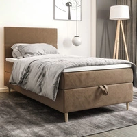 Kontinentální postel Bing 120x200 světle hnědá v moderním skandinávském stylu s čalouněným čelem postele s úložným boxem