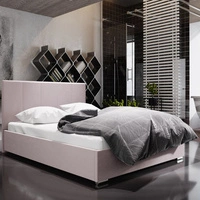 Čalouněná postel Amby 180x200 béžová stylová postel s úložným prostorem na lůžkoviny pohodlný podhlavník zaujme svým elegantním designem