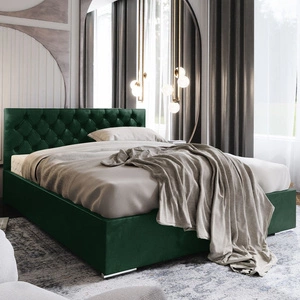 Čalouněná postel Alvorada 140x200 lahvově zelená s kontejnerem v moderním skandinávském stylu s prošívaným čelem