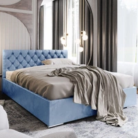 Čalouněná postel Alvorada 140x200 modrá s úložným boxem v moderním skandinávském stylu s prošívaným čelem