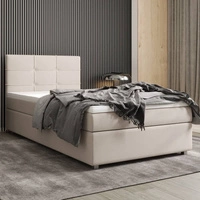 Kontinentální postel Fresno 120x200 béžová v moderním skandinávském stylu s čalouněným čelem postele s úložným boxem