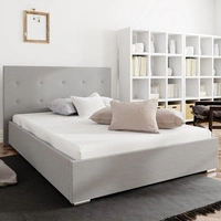 Čalouněná postel Amby 140x200 béžová Stylová postel s úložným prostorem na lůžkoviny Pohodlný podhlavník zaujme svým elegantním designem