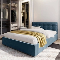 Čalouněná postel Alvorada 160x200 modrá s úložným boxem v moderním skandinávském stylu s prošívaným čelem