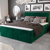 Kontinentální postel Bing 90x200 lahvově zelená v moderním skandinávském stylu s čalouněným čelem postele s úložným boxem
