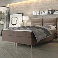 Světle hnědá kontinentální postel Manhattan 160x200 v moderním skandinávském stylu s čalouněným čelem a nohama
