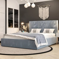 Čalouněná postel Bauru 140x200 s úložným boxem v moderním skandinávském stylu s prošívaným podhlavníkem s křišťály