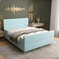 Modrá kontinentální postel Arvada 100x200 v moderním skandinávském stylu s čalouněným čelem postel s úložným boxem