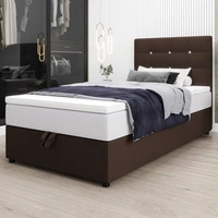 Hnědá kontinentální postel Kingston 90x200 v moderním skandinávském stylu s čalouněným čelem s krystaly postel s úložným boxem