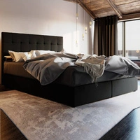 Černá kontinentální postel Kingston 90x200 v moderním skandinávském stylu s čalouněným podhlavníkem s krystaly Postel s úložným boxem