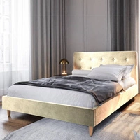 Čalouněná postel Alford 180x200 béžová s kontejnerem v moderním skandinávském stylu s prošívaným podhlavníkem a podnožkou s krystaly