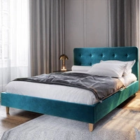Čalouněná postel Noiro 140x200 tyrkysová s kontejnerem v moderním skandinávském stylu s výrazným čelem