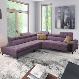 Rohová sedačka s funkcí spaní Bolmso IX fialová levá pohodlná rohová sedačka do obývacího pokoje se zásuvkovými kontejnery na lůžkoviny stylový design