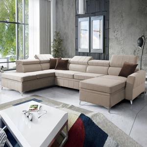 Rohová sedací souprava s funkcí spaní Fiesta U XL světle béžová elegantní rohová sedací souprava do obývacího pokoje s úložným prostorem na lůžkoviny látka s plyšovým povrchem