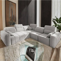 Kelly Sleek X šedá levá rohová sedačka s funkcí spaní mimořádně elegantní rohová sedačka do obývacího pokoje s nastavitelnými opěrkami hlavy