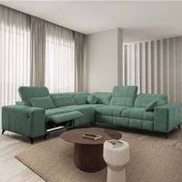 Rohová sedací souprava s funkcí spaní Penejos III Lux zelená levá komfortní rohová sedací souprava do obývacího pokoje s výsuvnou podnožkou kontejner na ložní prádlo