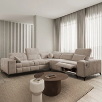 Rohová sedací souprava s funkcí spaní Cetara VII béžová levá Vysoce kvalitní rohová sedací souprava do obývacího pokoje s pohodlným posuvným opěradlem