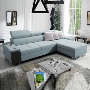 Rohová rozkládací pohovka Dafni arktická modrá pravostranně vypletená pohodlí a funkčnost při každodenním odpočinku