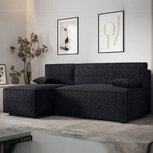 Rohová sedací souprava s funkcí spaní Brandon černá levá strana měkká tkanina s charakteristickou smyčkovou povrchovou nádobou na lůžkoviny