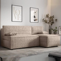 Rohová sedací souprava s funkcí spaní Brandon béžová pravá strana měkká tkanina s charakteristickou smyčkovou povrchovou nádobou na lůžkoviny