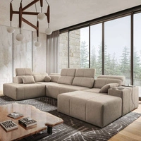 Rohová sedací souprava Samos béžová pravý roh moderní design jednoduchý a stylový design, který se hodí do každého interiéru nastavitelné opěrky hlavy