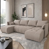 Rohová pohovka s funkcí spaní Fiesta U XL béžová elegantní rohová pohovka do obývacího pokoje s úložným prostorem na lůžkoviny tkaná látka