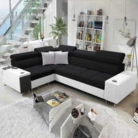 Rohová sedací souprava s funkcí spaní Dafni II černobílá levostranná proplétaná rohová sedací souprava s celočalouněnou zásuvkou na lůžkoviny