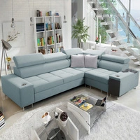Rohová sedací souprava s funkcí spaní Dafni II arktická modrá pravoúhlá rohová sedací souprava s úložnou zásuvkou na lůžkoviny v boční části nábytku