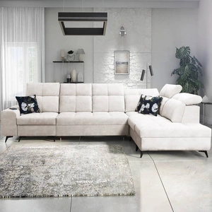 Rohová pohovka s funkcí spaní Buffalo II krémová levá Funkční a stylová rohová pohovka s nastavitelnými opěrkami hlavy