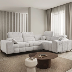 Rohová sedací souprava s funkcí spaní Savona světle šedá levá pohodlná a elegantní rohová sedací souprava s nastavitelnými opěrkami hlavy dekorativní prošívání