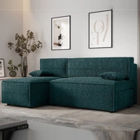 Rohová sedací souprava s funkcí spaní Brandon tyrkysová levá strana měkká tkanina s charakteristickou smyčkovou povrchovou nádobou na lůžkoviny