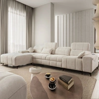 Rohová pohovka s funkcí spaní Penejos XI béžová levá pohodlná rohová pohovka s nastavitelnými opěrkami hlavy a dvěma přihrádkami na lůžkoviny